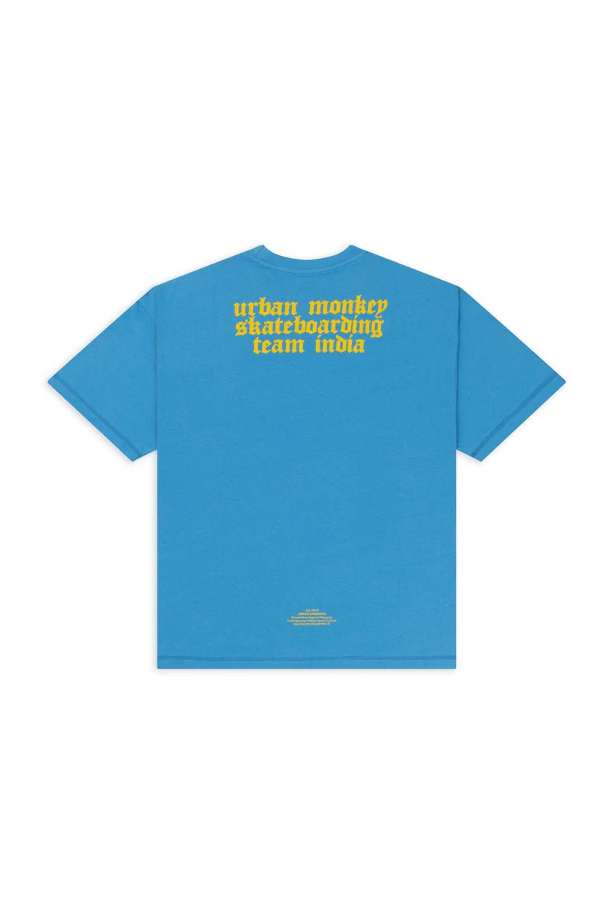 Downtown Drift throws it back to futuristic grit. Stamped on a bold cerulean blue base, the front graphic features a robotic skater mid-trick part machine all UMSB vibe. The oversized fit gives it that laidback energy, while the abstract textured print on the back keeps things unexpected. Whether you're skating through traffic or just drifting through your day, this tee brings chaos and control in equal measure.