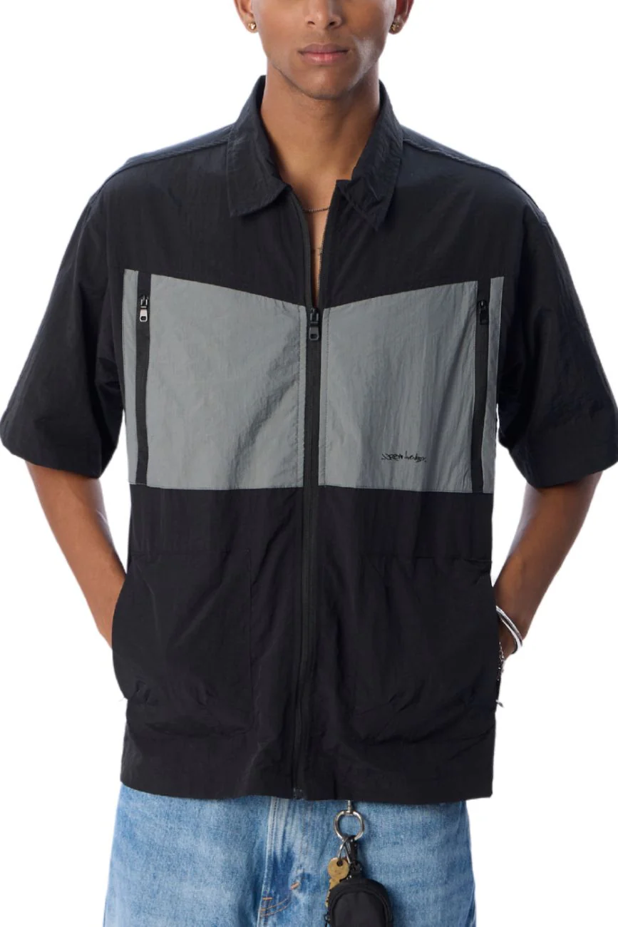Designed for movement, built for the storm. This zip-front shirt in 100% nylon is lightweight, quick-drying, and functional in unpredictable weather. With two secure zip pockets and two side pockets it blends clean design with practical storage — perfect for monsoon commutes and everything after.